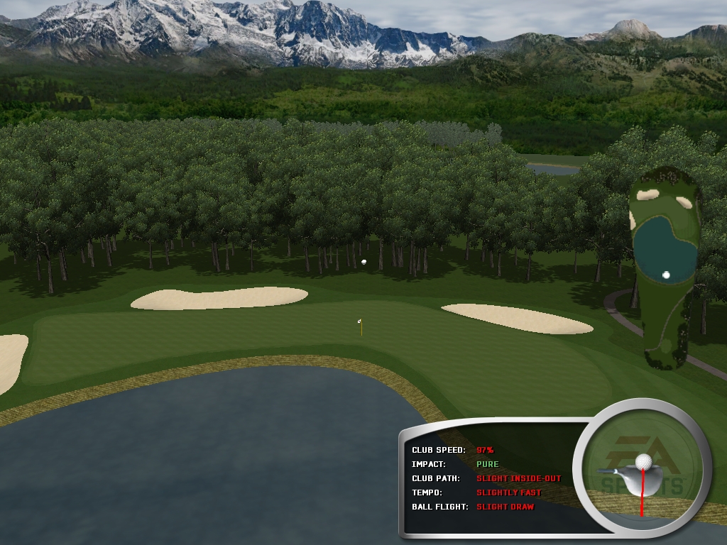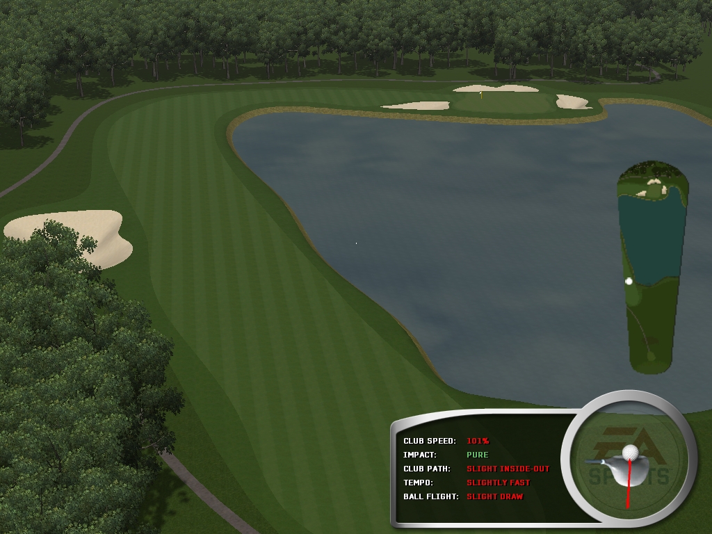 suggest you add more shot paths to the second hole, so that the possible landing areas, fairway, etc are visible on the Overhead, not just the water