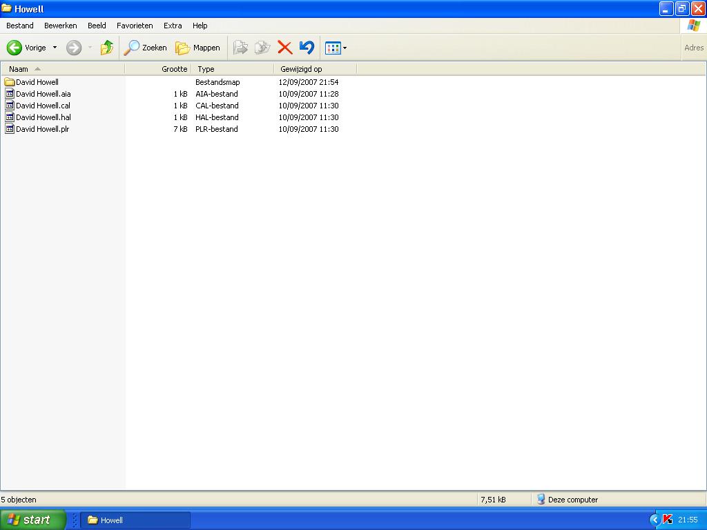 Folder named: David Howell David Howell.aia David Howell.cal David Howell.hal David Howell.plr