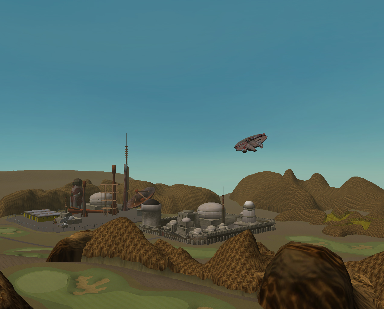 | Heres the Millennium Falcon hovering over the course. This is a TW2006 pic because my TW2007 game has given up on me for no apparent reason. Tried every possible method of uninstalling and re-installing, but the game just wont start anymore. |